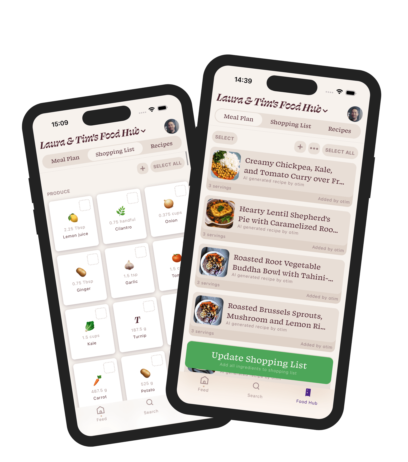 Turn your meal plan into a grocery list with one tap. Bonus: everyone in your household can plan meals and do the shopping.